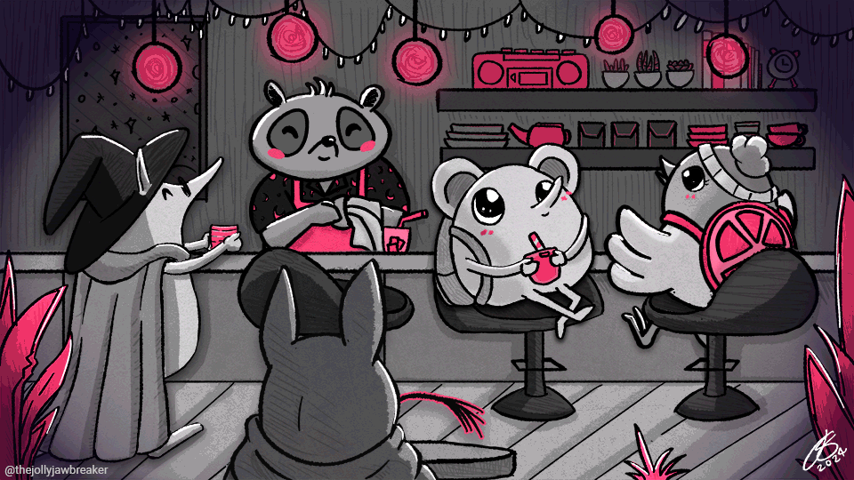 Lil Sengi and Friends hanging at Cafe Tanu (Drawn + Animated in Photoshop)